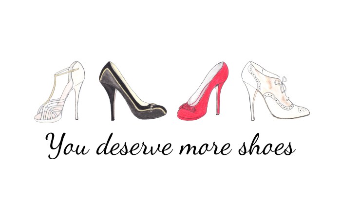A while back I brought some of my favorites pumps to a drawing class. I wasn’t about to draw any kind of old shoe!! And today, I decided to do something with such drawings. So here it is, a little design to reaffirm that I deserve more shoes!