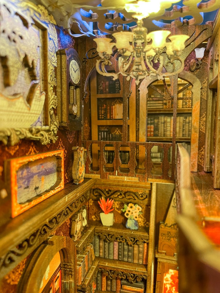 I got this book nook for Christmas and I wasn’t sure I would enjoy it but I love it. It was quite a process to build it, a little stressing at times but also quite fascinating. And now, I’m happy to see it in my library!